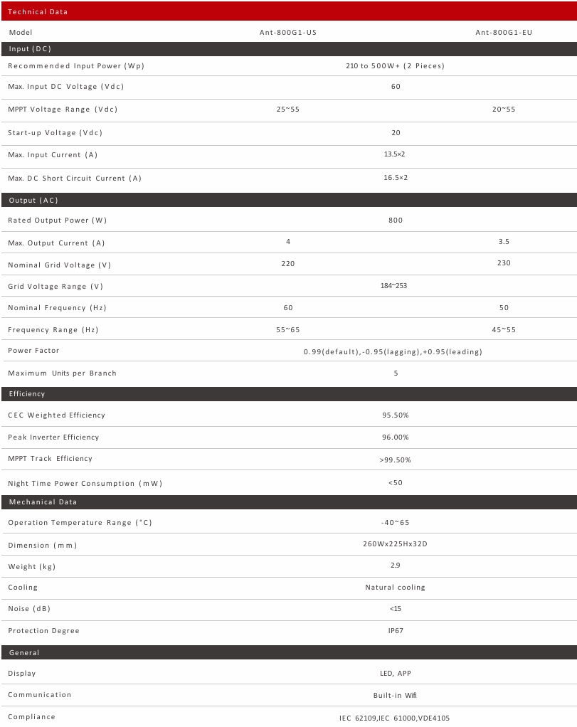 Microinverter Ant-800G1-US Ant-800G1-EU