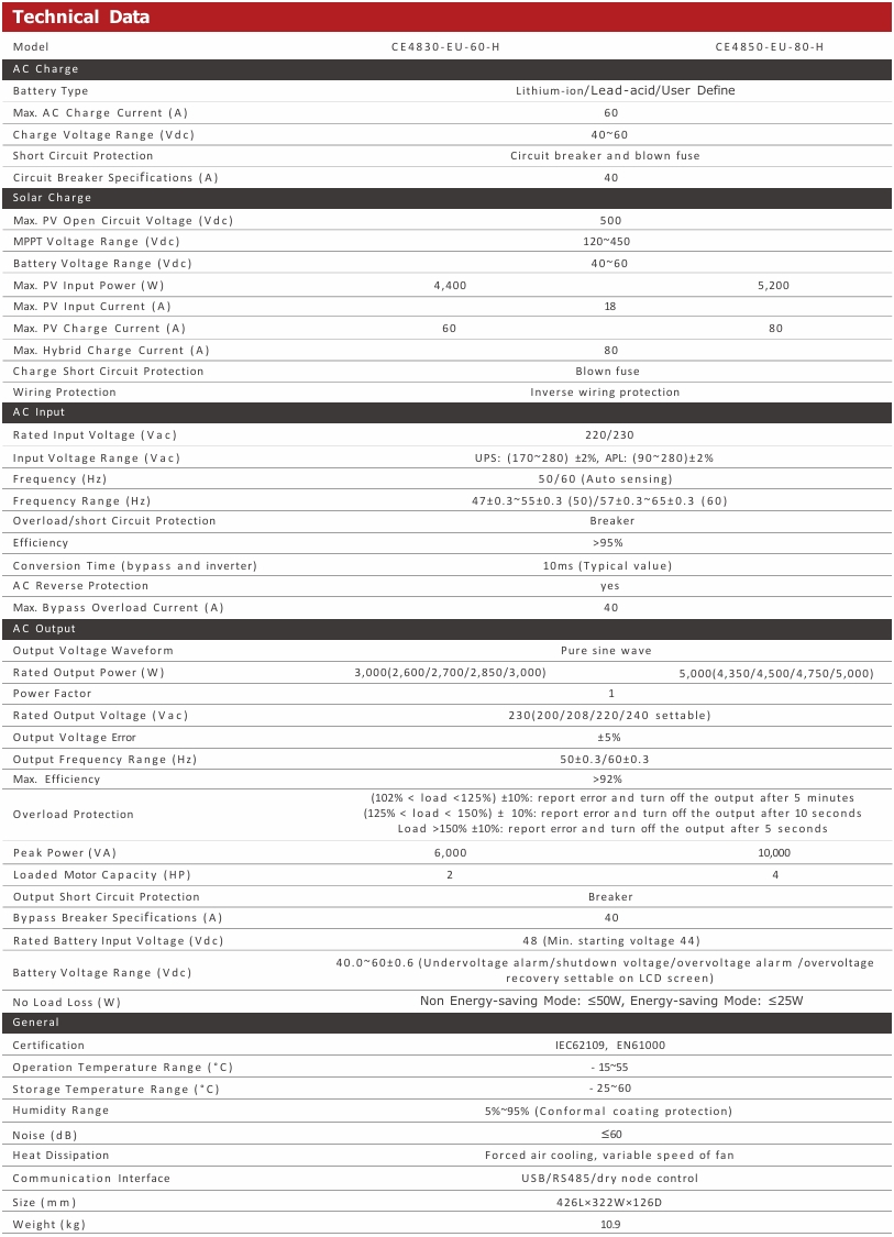 Off Grid Hybrid Inverter CE4830-EU-60-H CE4850-EU-80-H