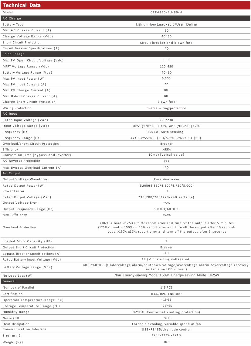 Off Grid Hybrid Inverter CEP4850-EU-80-H