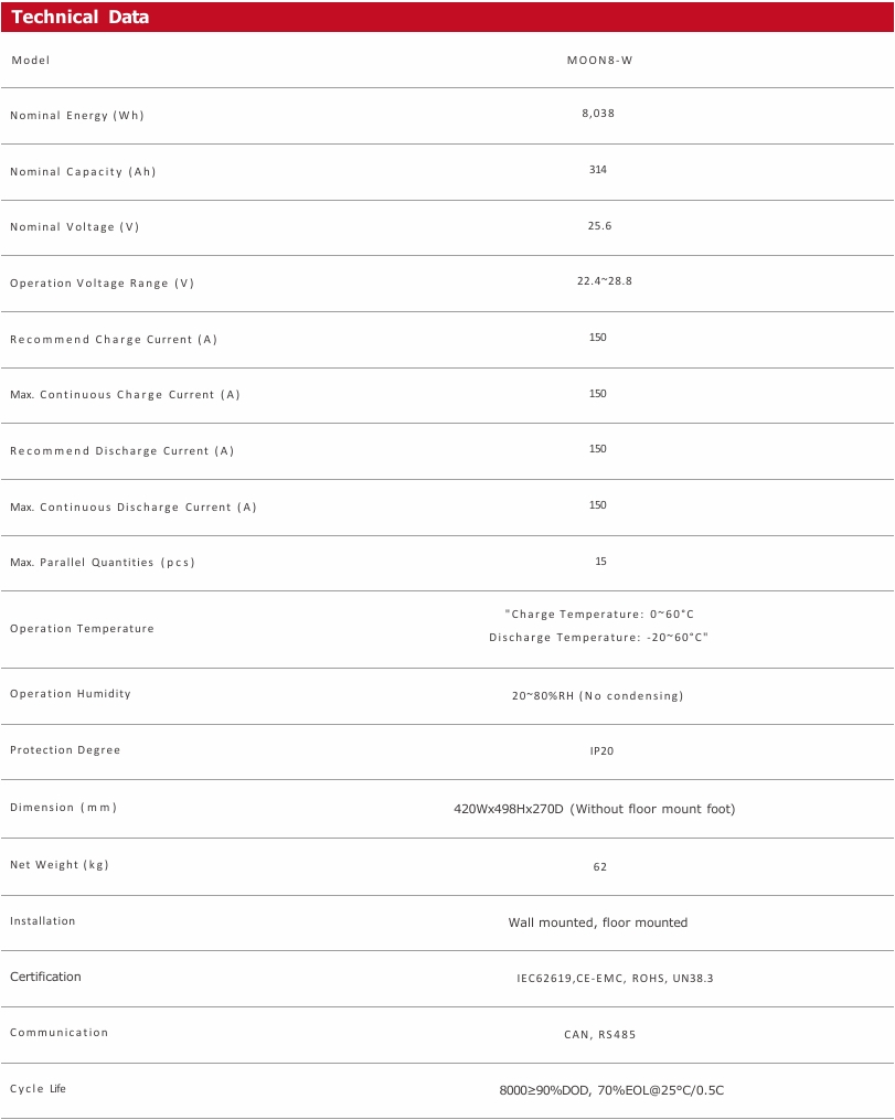 LiFePO4 Solar Battery Pack MOON8-W 25.6V314Ah 8038Wh
